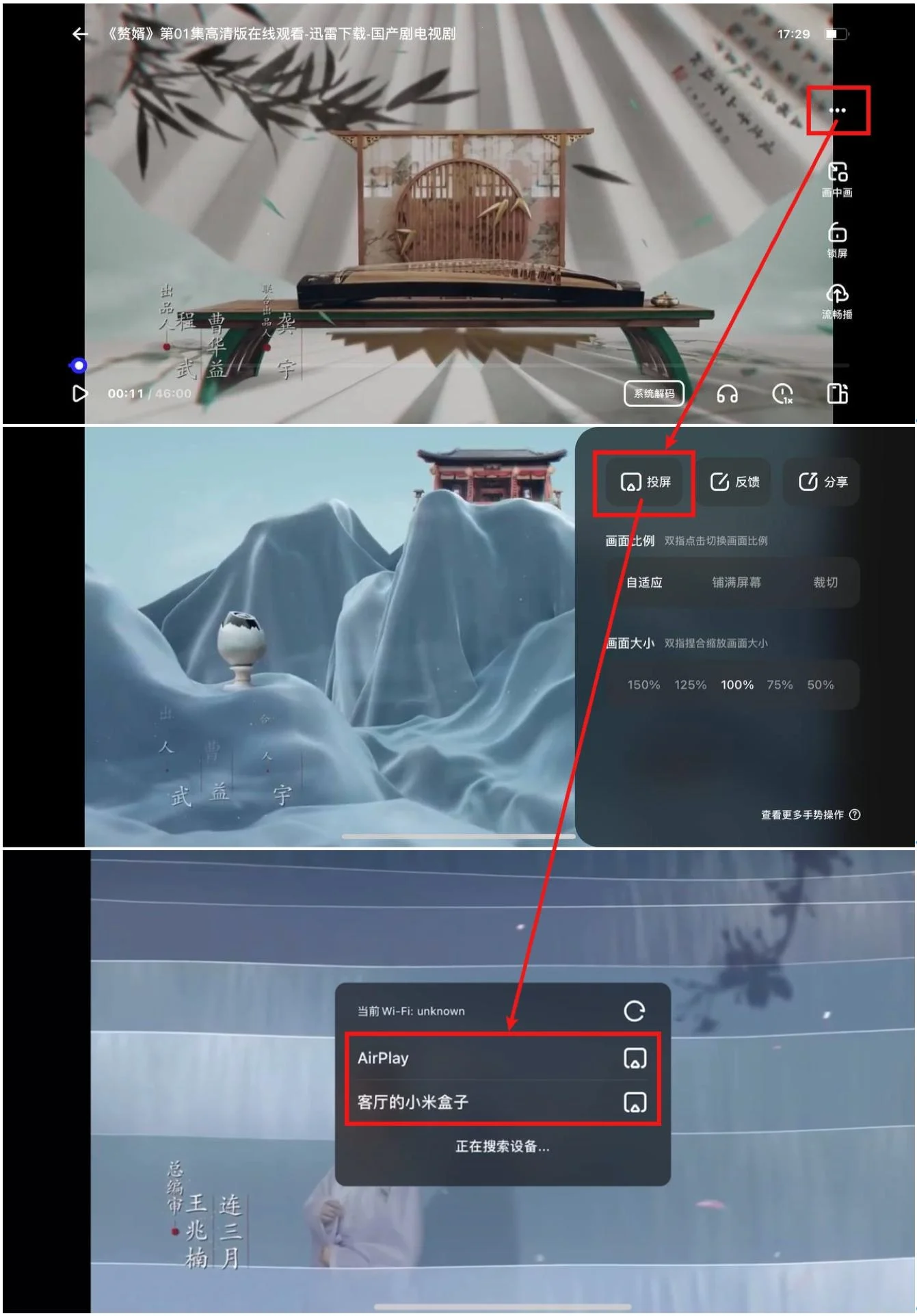 打开夸克浏览器->打开泉优剧场 - 热门短剧,每天更新->播放视频->选择·····右上角 … ->投屏->等待搜寻出智能电视/电视盒子->选中,即可投屏。