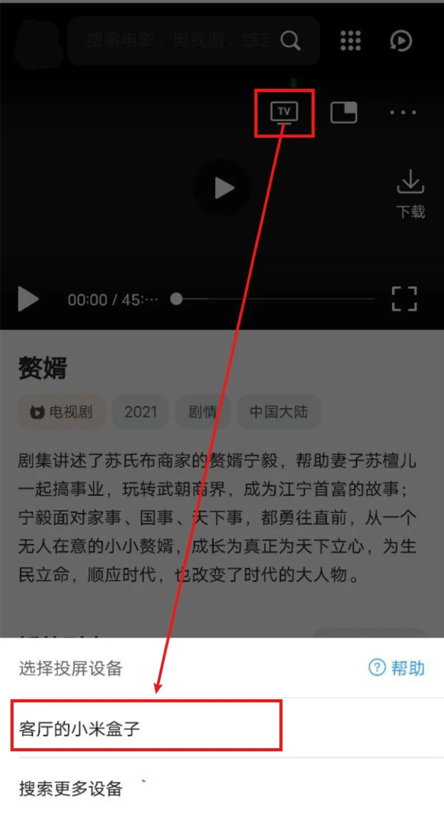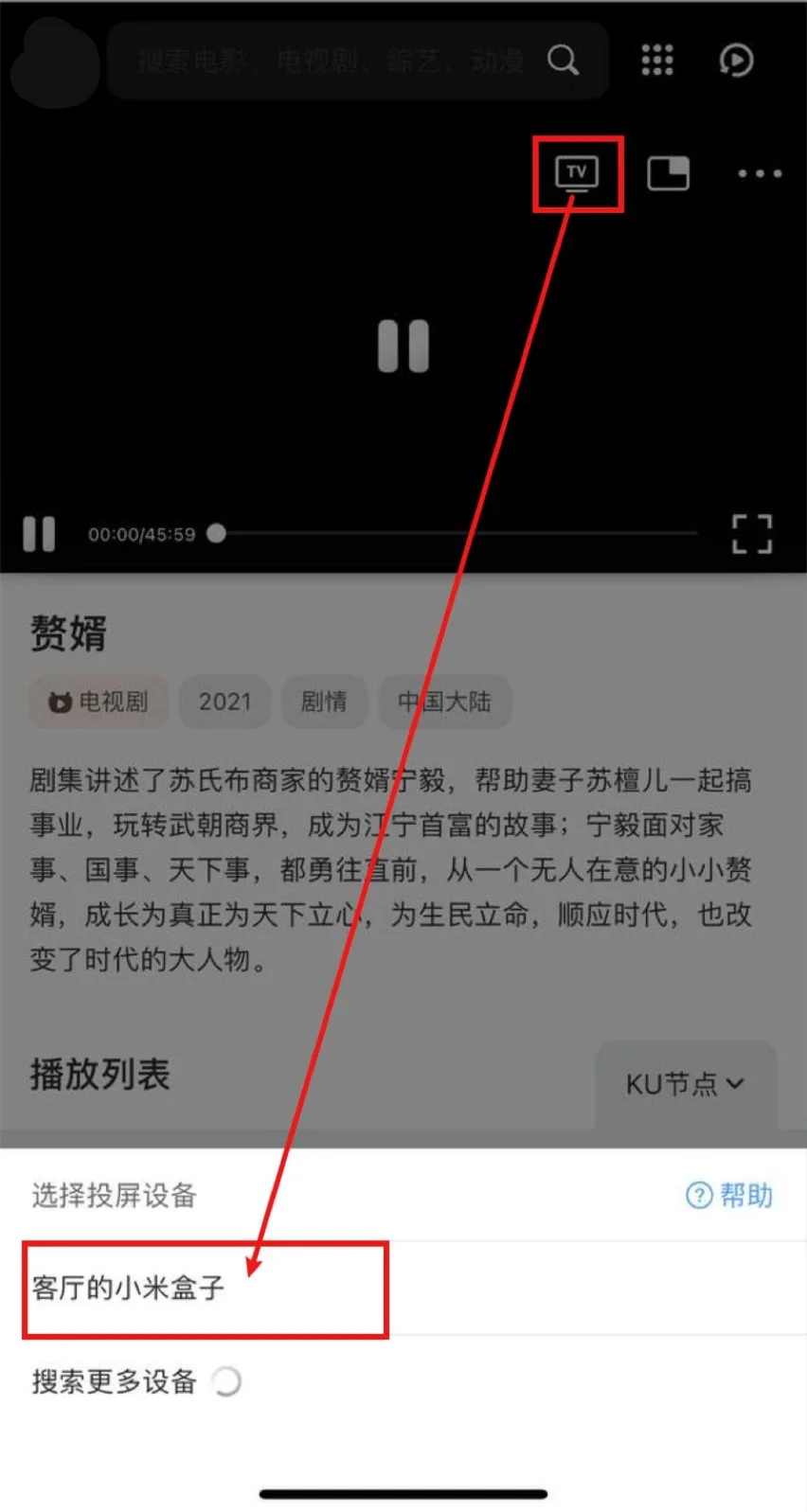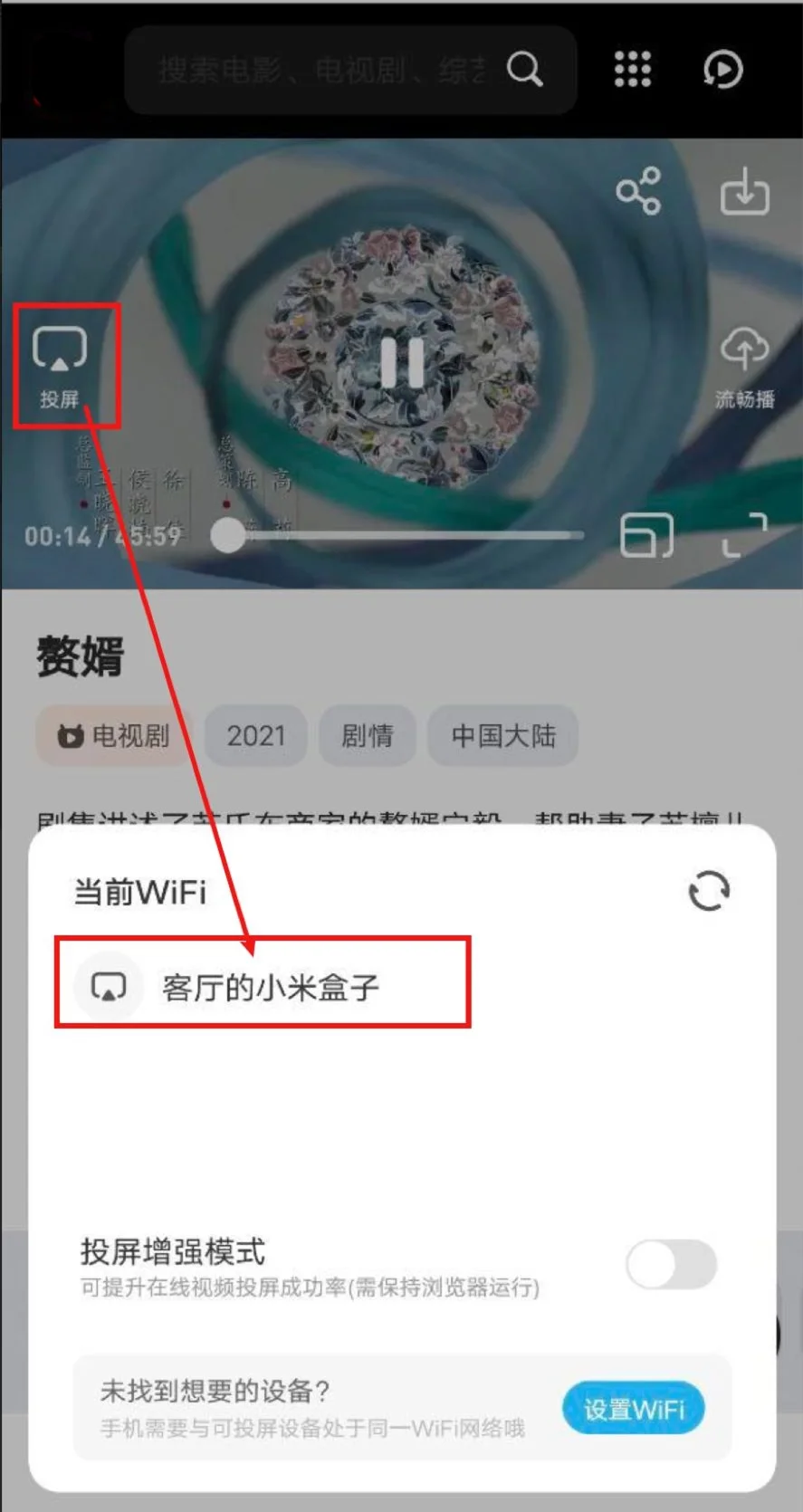 打开QQ浏览器(会接管网页播放器)->打开泉优剧场 - 热门短剧,每天更新->播放视频->选中投屏图标->等待搜寻出智能电视/电视盒子->选中,即可投屏。